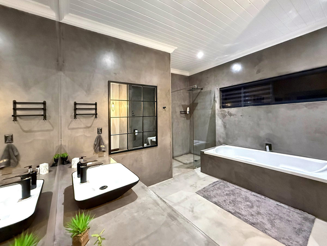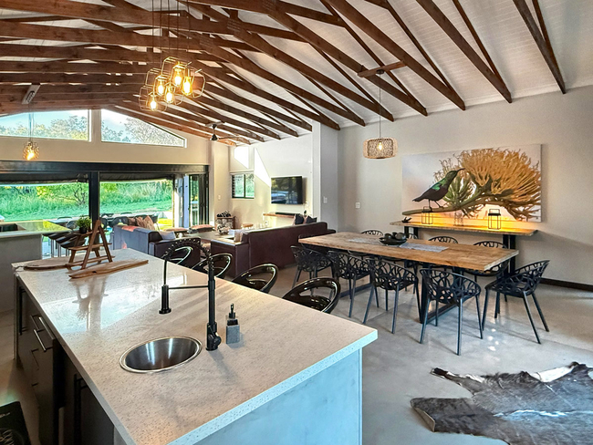 The property comfortably accommodates up to 12 guests across four en-suite bedrooms. Each room is individually inspired by the natural elements and is furnished with a king-size bed as well as an additional single bed. The bathrooms are well appointed, offering either a full bath with shower or an indoor-outdoor shower design that enhances the connection to the surrounding environment.