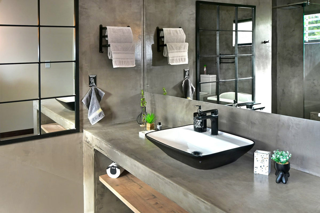 The bathrooms are well appointed, offering either a full bath with shower or an indoor-outdoor shower design that enhances the connection to the surrounding environment.