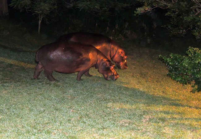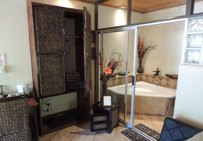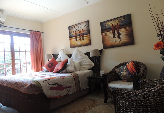 The rooms lead out through two large wooden doors opening on to a patio which overlooks the coastal dune forest of the Greater St Lucia Wetlands Park, the garden and pool area. Roaming hippo, bushbuck and red duiker to mention a few frequent the lawn below. Your morning wake up call will be from the Avis flocking together or perhaps the call of the Fish Eagle in their natural surroundings.