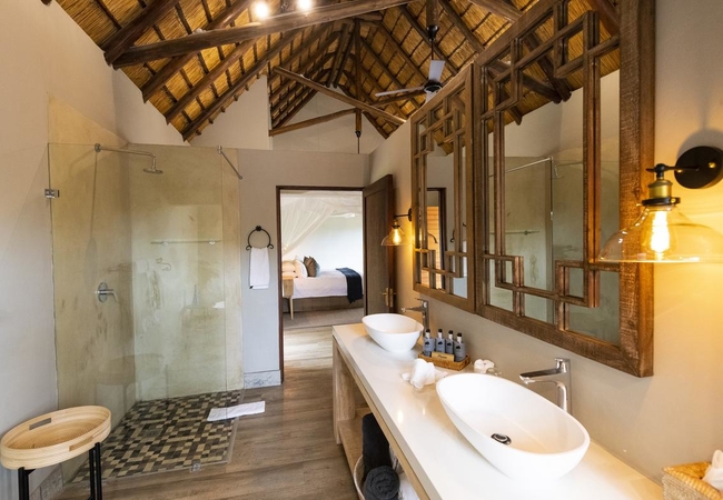 The Manyeleti honeymoon suite provides for romantic elegance and the setting ensures privacy with a stunning view. This glass fronted suite has all the regular luxuries and also boasts a private splash pool and sala, ideal for a mid-morning nap.