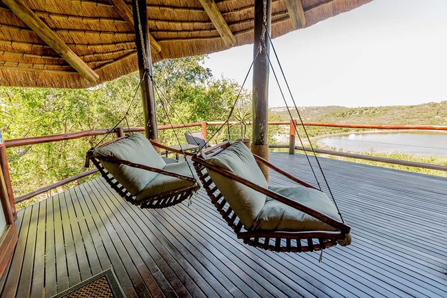 The sumptuous individual suites, each with full en-suite facilities, outdoor shower and private deck area have either sweeping views of the active waterhole, or indigenous bushveld with abundant bird life. The lodge caters for a maximum of ten people. Attention to highly personalised service makes for a memorable stay.