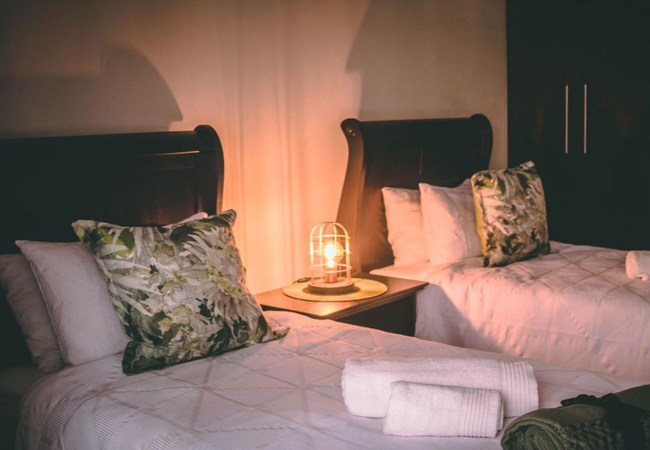 A communal patio, cosy lounge, indoor swimming pool, and communal braai facilities are also available for guests to use. Guests are welcome to sit and reflect in the quaint little chapel or even in the enormous aviary. Parking is available.