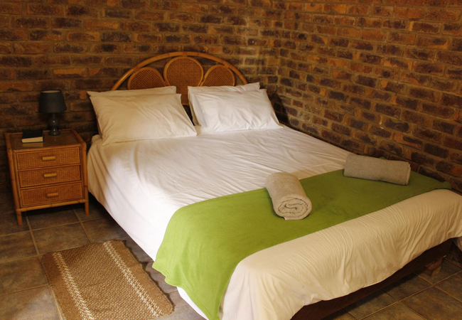 The One Bedroom Chalet is furnished with a Queen-size bed and has an en-suite bathroom fitted with a shower, toilet and basin. Bring your own swimming towels. The kitchen is fully equipped for self catering and outside is secure parking and braai facilities.