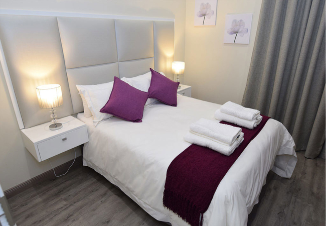 The main bedroom is furnished with a Queen-size bed and has a full en-suite bathroom. The second and third bedrooms are each furnished with a double bed and make use of a shared guest bathroom with a toilet, bath and a shower. The kitchen is fully equipped for your self catering requirements and includes a washing machine for convenience. The living area has a large corner couch and a flat screen TV. Each apartment is equipped with air-conditioning, wireless connectivity, satellite channels, 24-hour security and free parking.