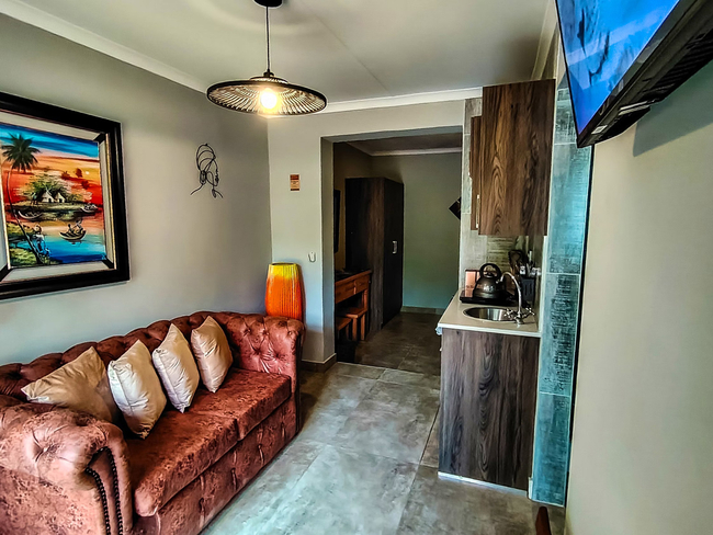 The resort provides a welcoming setting for all types of stays — from romantic getaways to family holidays or quiet solo retreats. Guests can enjoy well-maintained gardens, serene outdoor seating areas, and a refreshing swimming pool, with braai and boma facilities available for relaxed social evenings. Every detail at El-Tsuri is designed to make your stay comfortable and memorable.