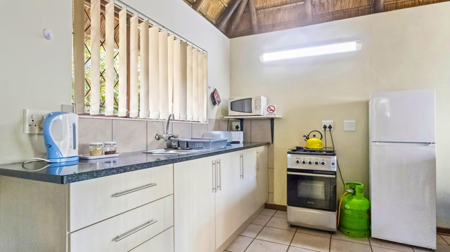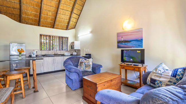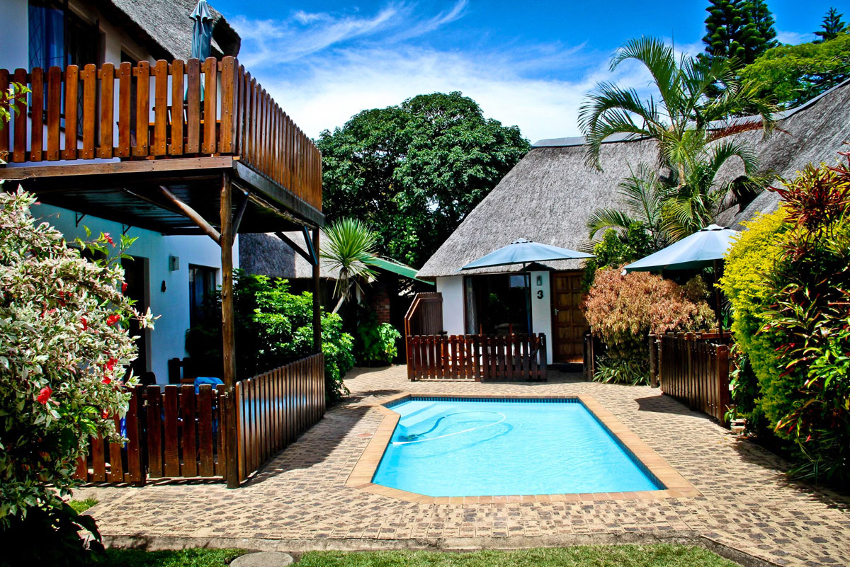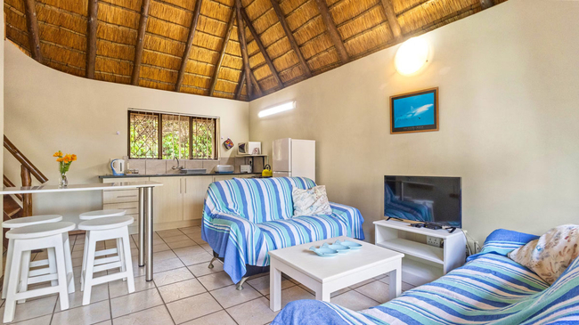 Emerald Cove comprises tastefully furnished and fully equipped self-catering chalets. The thatch chalets are tastefully furnished and have 1 or 2 bedrooms, lounge, kitchen and patio. Each chalet is fully equipped and includes microwave, fan and TV (DSTV available if you bring your own decoder).