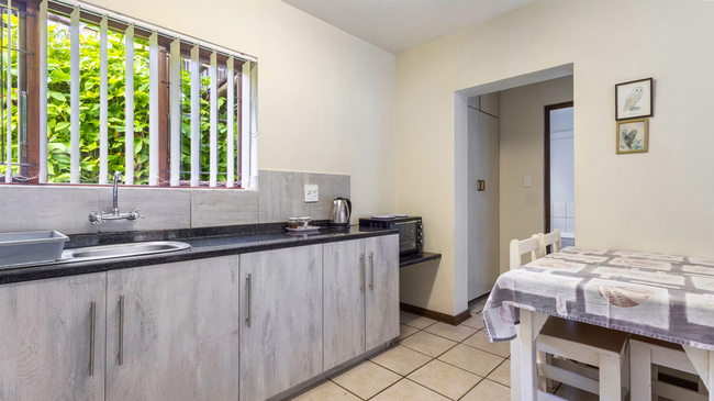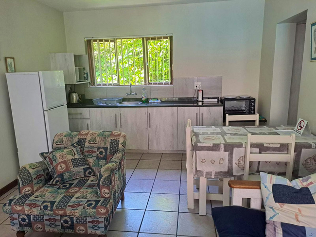 The One-Bedroom Chalet offers a relaxing coastal retreat, perfectly positioned closest to the beach with gentle sea views. The bedroom features a queen-size bed and an en-suite bathroom with a refreshing shower. In the lounge, a comfortable sleeper couch provides extra space for additional guests. The kitchen is well-equipped with a two-plate stove, oven, microwave, refrigerator, toaster, and bar fridge, making it ideal for convenient self-catering. Guests can enjoy a comfortable sitting area, air conditioning, and the peace of mind provided by an in-room safe. Complimentary Wi-Fi and a TV ensure easy connection and entertainment throughout the stay, while a daily cleaning service maintains a tidy space. Outdoors, the chalet opens onto a private patio and balcony furnished with seating and a dining area, offering pleasant garden and sea views. This non-smoking unit combines modern comforts with a tranquil seaside atmosphere, creating the perfect setting for rest and relaxation.