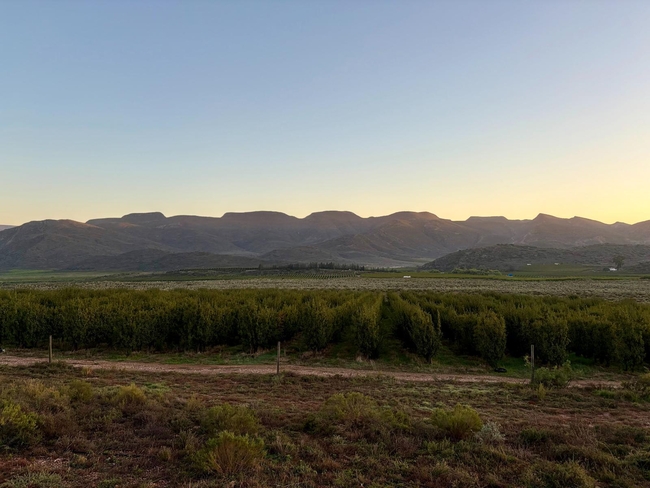 From the cottage, guests are treated to sweeping views of the surrounding farmlands, the imposing Langeberg Mountains, and, after dark, the magnificent star-filled skies of the Klein Karoo, unspoiled by light pollution.
