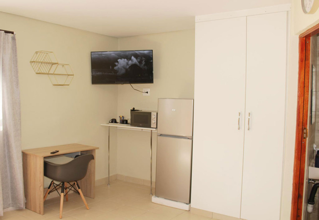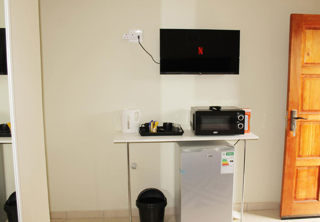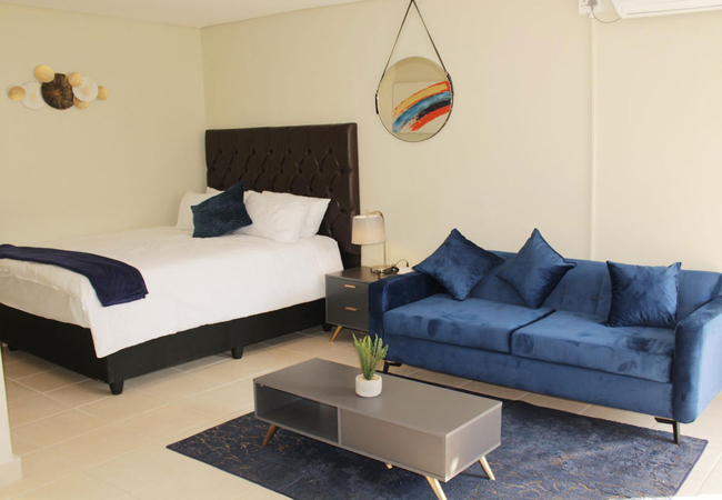 The Family Room is furnished with a Queen-size bed and a double sleeper couch. The en-suite bathroom is fitted with a shower, toilet and basin. Each room has air-conditioning, a TV for media entertainment, bar fridge, microwave, work desk and free Wi-Fi.