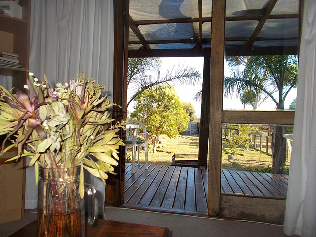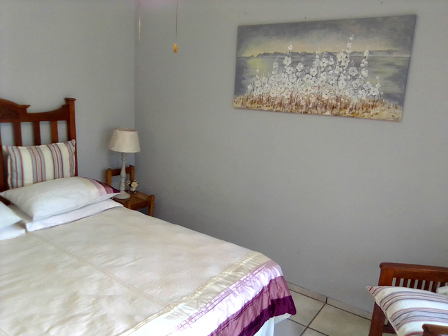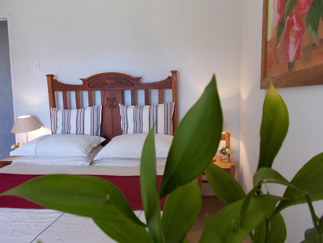 The flatlet was created with family holidays in mind. It can sleep four people comfortably. There is a double room furnished with a Queen size bed. French doors from this room lead to the deck and garden … admire the mountain views from the bed!