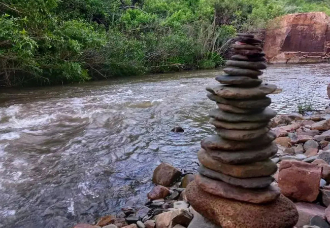Karee River Camp offers basic sites for caravan or tent within 40m of the Groot Marico River (bass, barbel, yellow fish) that flows through the farm. The camp is large and spacious, and set in a beautiful nature spot that offers peace and tranquillity. It is mountain facing with stunning sunrise and sunset views. Hot water is generated by a gas geyser. There is an electrical point 200m from the camp site to charge appliances and there is also a fridge/freezer available at this point. There are 2 “camp base buildings” that are under cover and these buildings offer a kitchen area with a double zinc, a table and chairs, shelves to unpack all your goodies, a gas 2 plate burner, gas for hot water, solar lights. There is an undercover toilet, shower and braai area. We allow a maximum of 30 guests. Guests must bring their own bedding and camping /cooking equipment.