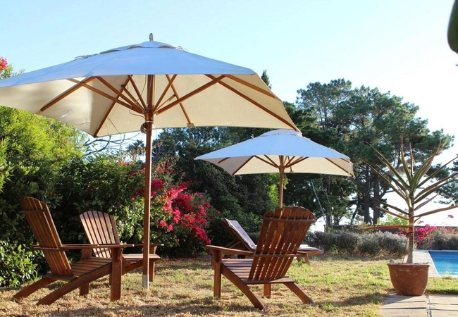 The guest house boasts Wi-Fi access, a swimming pool in the garden with sun loungers, an outdoor kitchen and a braai area, an indoor lounge with fireplace and secure parking.