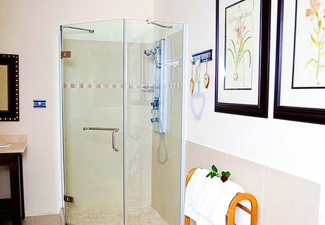 Room with a Queen-size bed, en-suite bathroom with shower only. All suites and rooms offer a bed with pure cotton linen, a private bathroom equipped with a shower, basin, toilet, hand towels, bath towels and other bathroom amenities. Each room also has an air-conditioning unit, ceiling fan, flat screen TV with hotel DStv and satellite channels, bar fridge, tea and coffee making facilities, complimentary Wi-Fi, inside and outside seating areas including a desk area for those on business. Hairdryers, irons and ironing boards are available on request.