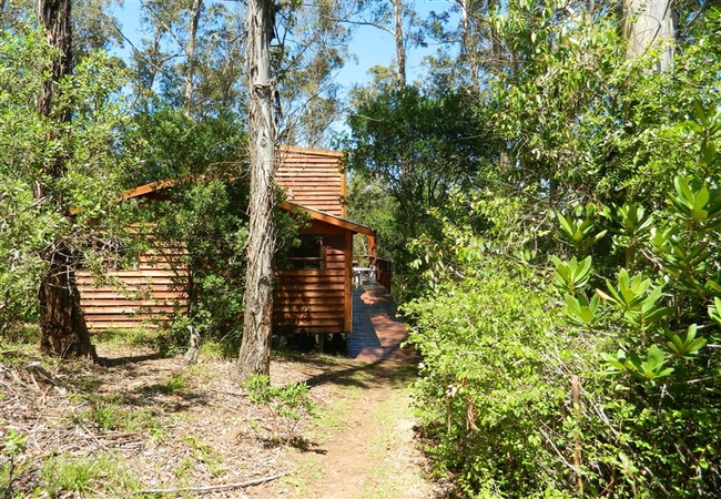 Set amongst the trees providing total privacy and seclusion. A perfect romantic getaway. The cabins are fully furnished and equipped for self-catering and braai facilities are on the deck. As well as an indoor shower, each cabin has its own outside hot and cold shower.