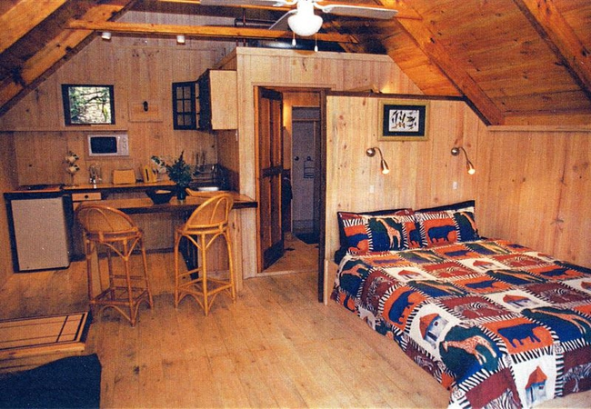 The gully that gave the farm its name runs through the bottom half of the land and the cabins, being built on stilts at the edge of the gorge, give the impression and ambiance of being in the tree tops. They are so positioned as to provide maximum seclusion and privacy and each cabin's deck faces its own view through the trees.