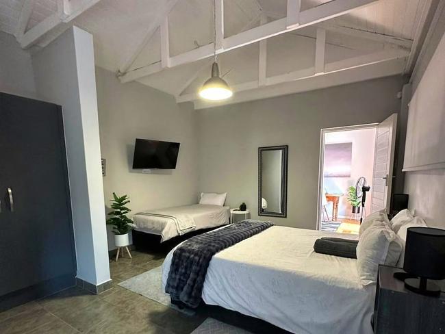 Fern Rivers Accommodation presents a range of carefully designed, self-contained units suited for solo travellers, professionals, and families. Each unit blends rustic elegance, with original wooden floors and lofty open-truss ceilings, with modern amenities for convenience. Guests can enjoy double beds, dedicated workspaces, and fully equipped kitchenettes that make self-catering effortless. To ensure uninterrupted comfort, every unit includes inverters that maintain connectivity for Wi-Fi and Smart TVs during power interruptions, as well as gas geysers for reliable hot water.
