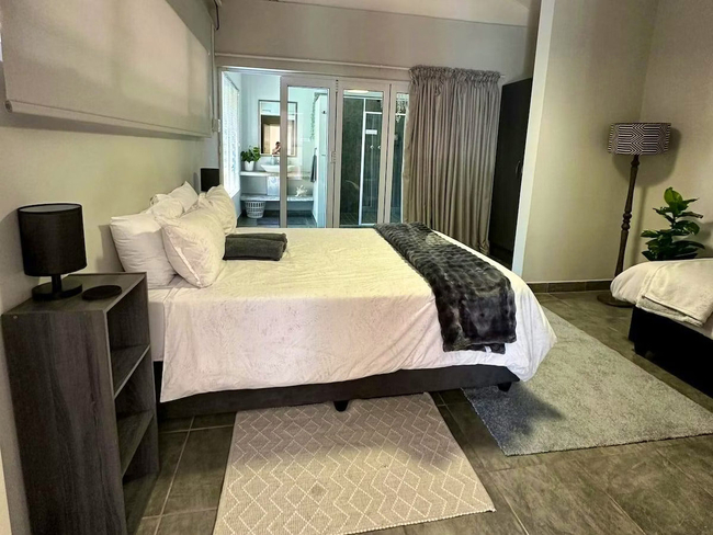 Fern Rivers Unit 4 offers a bedroom furnished with a double bed and a single bed, complemented by a bathroom with a shower and fresh towels. The unit features a kitchenette with a microwave, stove, refrigerator, toaster, and tea and coffee facilities, as well as a dedicated work and dining area. Guests can enjoy Wi-Fi, a 40-inch television, and reliable power via an inverter to support load-shedding. The unit is non-smoking and includes free on-site parking for convenience.