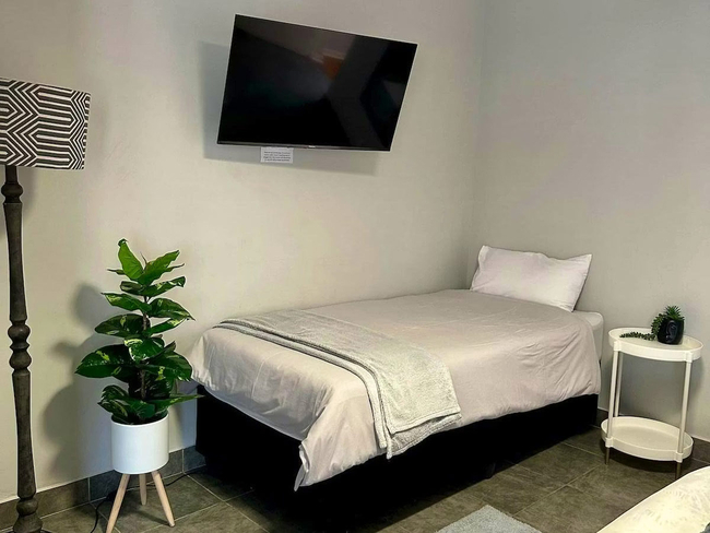 Fern Rivers Unit 2 offers a comfortable and practical bedroom ideal for short or extended stays. The unit is furnished with a double bed and includes an en-suite bathroom fitted with a shower only, along with quality bathroom amenities and fresh towels. A compact kitchenette is available for light self-catering and is equipped with a refrigerator, microwave, toaster, and tea and coffee facilities. Guests can enjoy Wi-Fi, a television, and a dedicated work desk, while a fan provides added comfort. The unit is non-smoking and secure parking is provided for peace of mind.