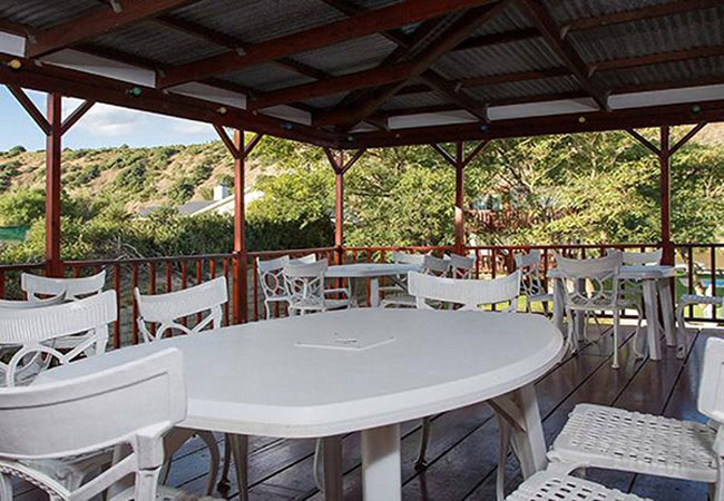 Each unit can sleep four adults and six children. There are two bedrooms in each unit, each one has a Queen-size bed, a single bed and two upper bunks. The bathroom has a shower and a hairdryer and towels are provided. There is a full kitchen and seating area which has a TV with satellite channels. Each unit has a deck. Braai facilities are available.