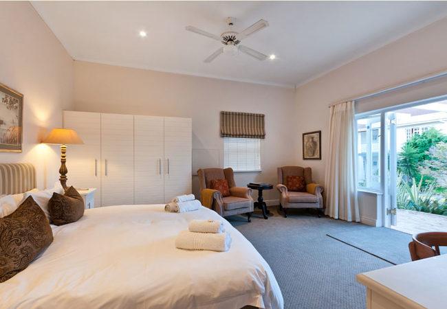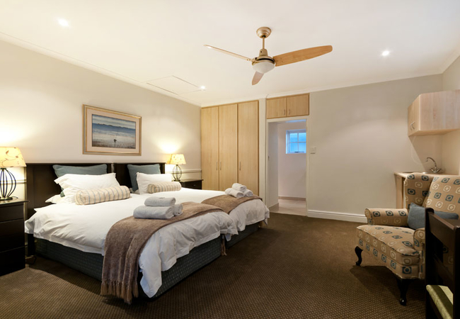 Twin beds, en-suite bathroom with bath and shower. Mini kitchenette with bar fridge, microwave, toaster, kettle, cutlery, crockery and glasses. Flat screen TV with DSTV, free Wi-Fi, telephone, electric fan, heater, hair dryer and private entrance.