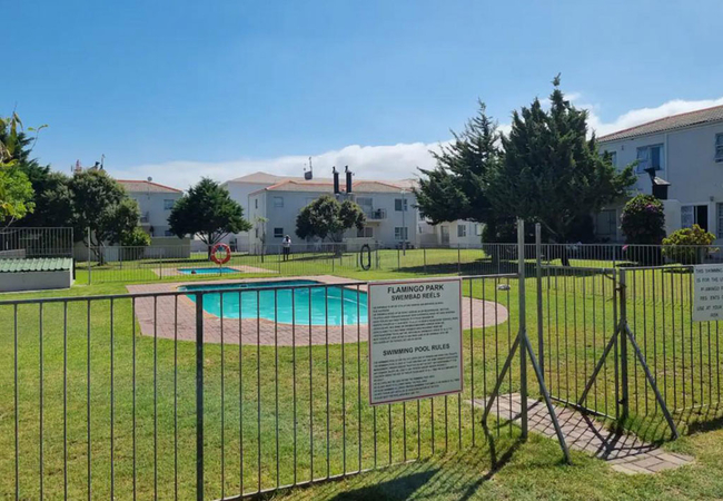 Flamingo Park 1 is located on the ground floor and has two bedrooms. The first bedroom is furnished with a double bed and the second with two single beds. The bathroom is fitted with a shower, toilet and basin. For convenience, linen and bath towels are provided and guests please need to bring their swimming towels. The open-plan living area features a fully equipped kitchen with a microwave, stove, oven and a fridge. A washing machine as well as tea and coffee facilities are also available. The lounge offers comfortable seating, a TV and free Wi-Fi access is available. The apartment opens onto the patio and garden with braai facilities.