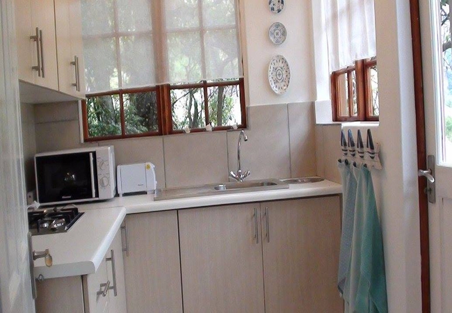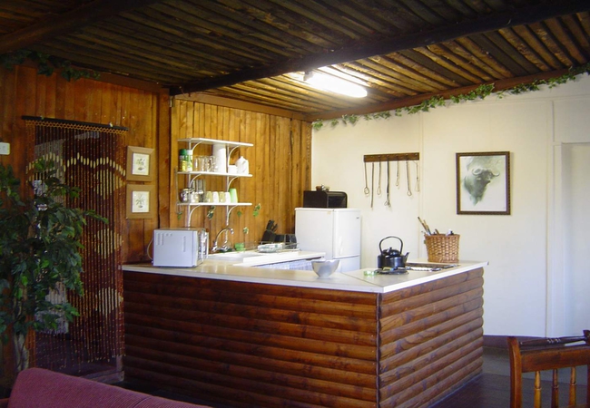 This self catering unit has two bedrooms - The first bedroom is furnished with a Queen sized bed and en-suite bathroom. The other bedroom has a King sized bed, or can be converted to two single beds It also has an en-suite bathroom. Fully equipped kitchen with a gas Braai and Webber braai for outdoor cooking. Fan, electric blanket and heater; snuggle under our percale cotton duvets and linen. (Note: if you are allergic to down feathers, we can supply fiber duvets and pillows) We supply Fire wood and charcoal.
