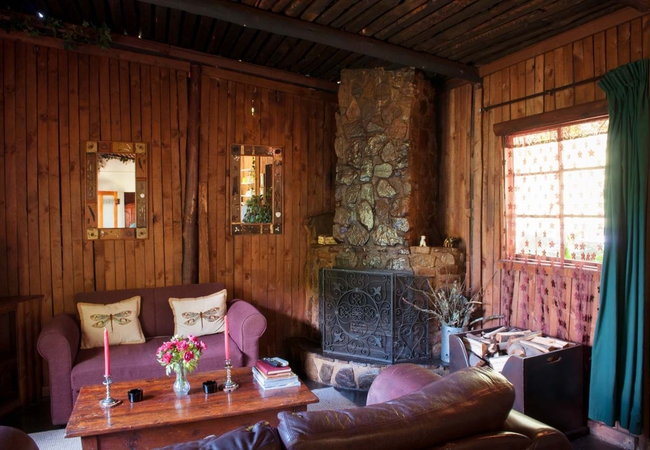 This cosy rustic wooden cottage is situated 1/2km away from the main lodge area next to the indigenous forest and is totally private, and within earshot of the stream, with stunning views of the mountains. The cottage has a fireplace in the lounge/ dining room and is fully equipped. There is a large outside braai area, with a table for a lazy breakfast, lunch or supper. The cottage comprises 1 queen bedroom en-suite (bath and toilet, with the shower over the bath), another small bedroom with bunk beds and a double sleeper couch in the lounge. Suitable for couples with children or a romantic getaway as the bathroom is open-plan romantic style. Fan, Electric blanket and heater, snuggle under our percale cotton duvets and linen. (Note: if you are allergic to down feathers, we can supply fiber duvets and pillows) We supply Fire wood. Please note that while we have not had the Forest Cottage graded - and it thus does not fall under our 4 star grading, you can still expect the same welcoming Forest Creek atmosphere.