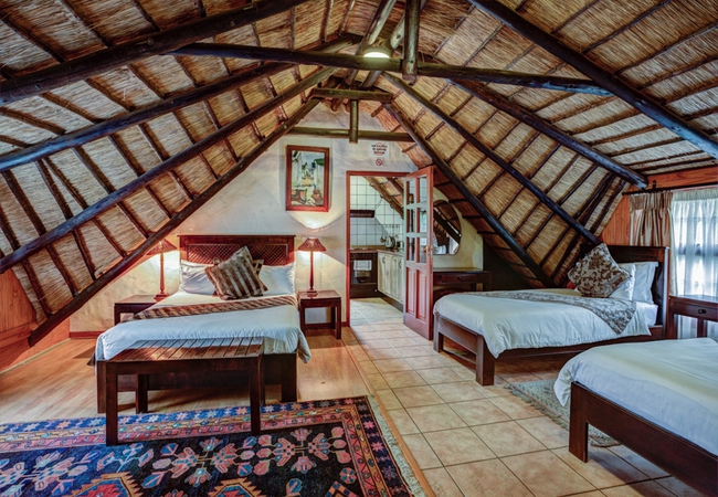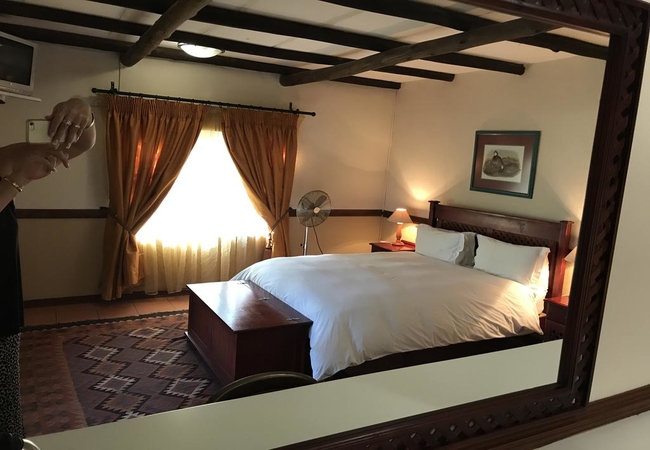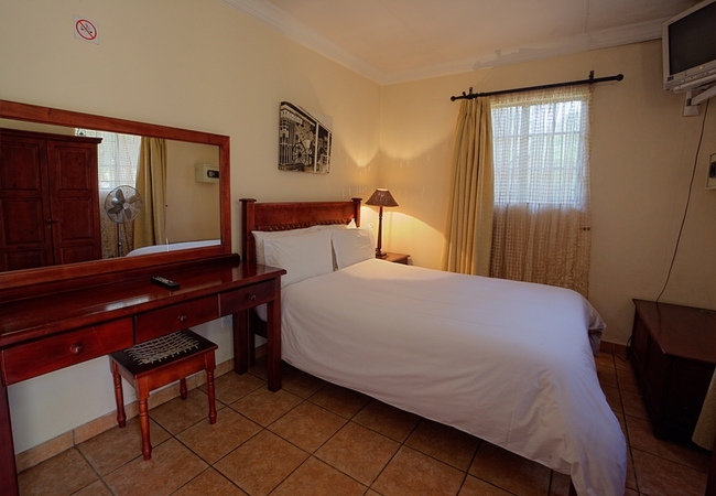 This room is furnished with two three-quarter Beds with TV and DSTV. The en-suite bathroom is equipped with a bath, hand basin and WC. Room facilities include a coffee station, internet access and TV with DStv. Secure, covered parking is provided and there is both a breakfast area and family restaurant on site. Shuttles and tours can be arranged on request.
