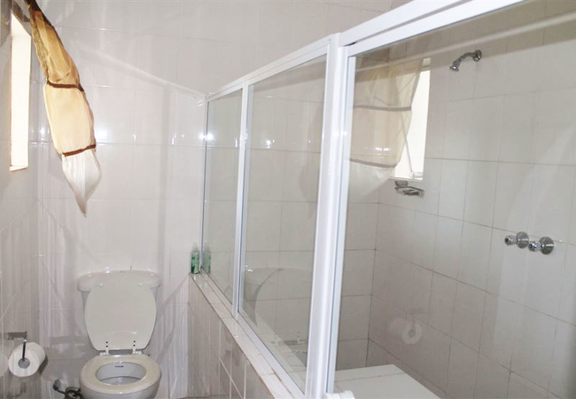 This room is furnished with a two three-quarter beds and makes use of a separate bathroom across the passage with a shower. The room is equipped with a TV, ceiling fan, bar fridge, tea and coffee making facilities and air conditioning.