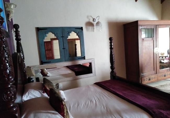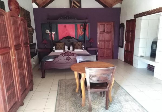 A charming room (somewhat smaller than the other guestrooms) but very well situated in the best part of the well established garden. Very private with its own entrance. The bedroom has a Double bed.