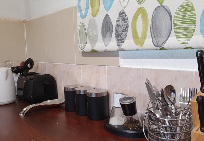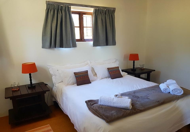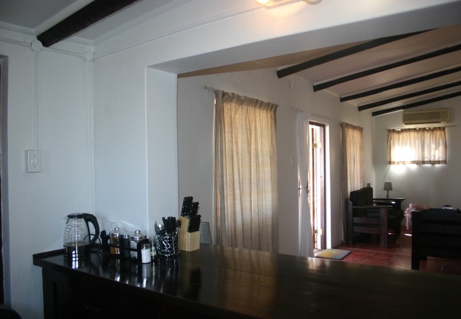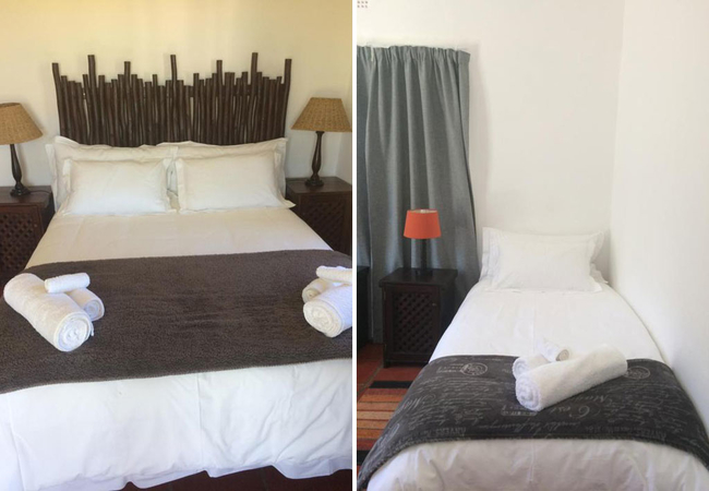 Olive is a two bedroom cottage, and is our "Pet-friendly by arrangement" cottage. The main bedroom is furnished with a double bed and the second bedroom has two singles. The bathroom is equipped with double showers. There is a separate lounge with open plan kitchen, which is equipped with a fridge, kettle, microwave, toaster, table top mini-oven with 2 hotplates. Other facilities include air-conditioning and free Wi-Fi. Private patio with braai.
