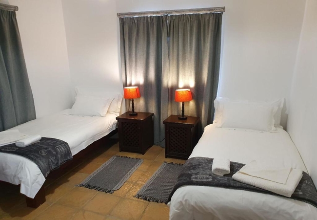 Shiraz is a two bedroom cottage. The main bedroom is furnished with a double bed and the second bedroom has two singles. The bathroom is equipped with double showers. There is a separate lounge with open plan kitchen, which is equipped with a fridge, kettle, microwave, toaster, table top mini-oven with 2 hotplates. Other facilities include air-conditioning and free Wi-Fi. Private patio with braai.