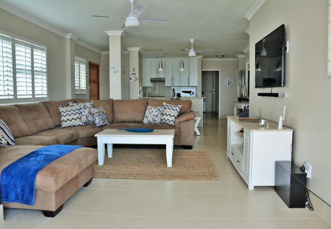 Frinton on Sea 4 is a three bedroom apartment that sleeps up to six guests. The main bedroom overlooks the ocean and boasts a king size bed, en-suite bathroom and a full HD smart TV with shared DStv, a hair dryer and digital safe. The second bedroom has a double bed and the third bedroom has two single beds. Both these rooms have air conditioning and a ceiling fan. All rooms have air conditioning.