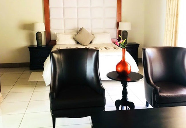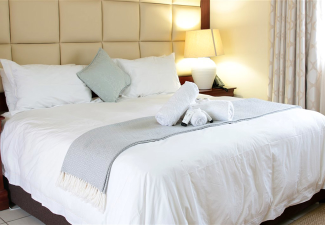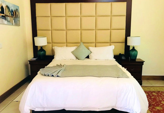 This two-bedroom unit has a King-size bed in each. The bathroom features a bath, shower, toilet and a basin. There is a fully equipped kitchen, TV with DStv, air-conditioning, hairdryer and Wi-Fi. Each room has a TV with DStv / satellite channels, a bar fridge, hairdryer, Wi-Fi and some units have fully equipped kitchens. Guests can make use of the swimming pool and free Wi-Fi.