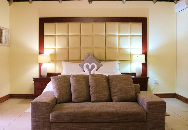 Phala Room is a one bedroom suite facing the fire boma. It has a King-size bed with an en-suite bathroom with a bath / shower combo, toilet and a basin. Each room has a TV with DStv / satellite channels, a bar fridge, hairdryer, Wi-Fi and some units have fully equipped kitchens. Guests can make use of the swimming pool and free Wi-Fi.