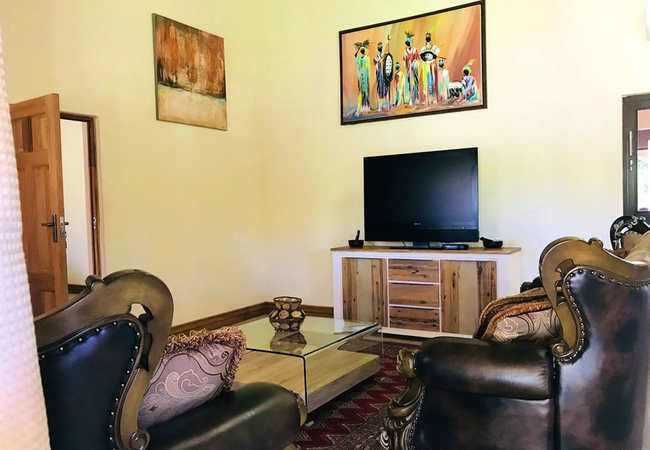 The unit has its own private entrance and two bedrooms. Each bedroom is fitted with a King-size bed. The bathroom features a bath, shower, toilet and a basin. There are self-catering facilities such as a stove, oven, kettle and a fridge / freezer. There are indoor and outdoor dining areas. Each room has a TV with DStv / satellite channels, a bar fridge, hairdryer, Wi-Fi and some units have fully equipped kitchens. Guests can make use of the swimming pool and free Wi-Fi.