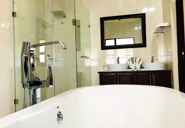 This unit has two bedrooms that each have its own bathroom with a bathtub and shower. The bedrooms each have a King-size bed. There is also a bar fridge and a TV. Each room has a TV with DStv / satellite channels, a bar fridge, hairdryer, Wi-Fi and some units have fully equipped kitchens. Guests can make use of the swimming pool and free Wi-Fi.