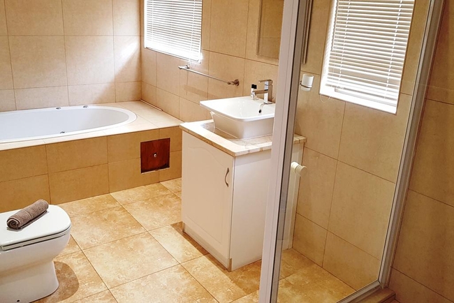 The fourth bedroom has a double bed and the fifth bedroom has two single beds and these bedrooms make use of a separate bathroom with a corner bath. Linen and bath towels are provided.