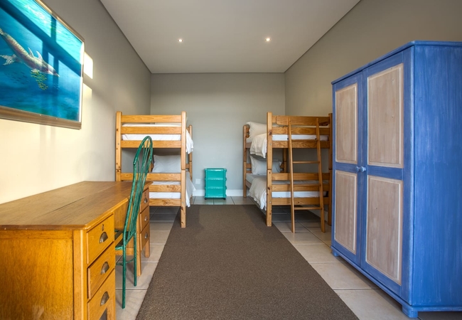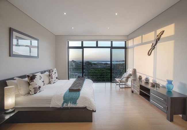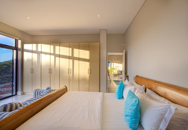 Gecko House offers four luxurious bedrooms and three bathrooms split over two levels, with an additional sun deck on the roof for 360 degree views of the surrounding mountains and ocean. Downstairs there are 3 bedrooms, the first bedroom has 4 bunk beds and the remaining 2 rooms have double beds. There are 2 family bathrooms with showers. Upstairs there is a master suite with a King-size bed and en-suite bathroom. The master suite also has a full sea view. The large living area has a television (DStv) and fireplace. Sliding glass doors exit onto an exterior balcony with stunning views. The kitchen is fully equipped and there is a built in braai on the balcony.