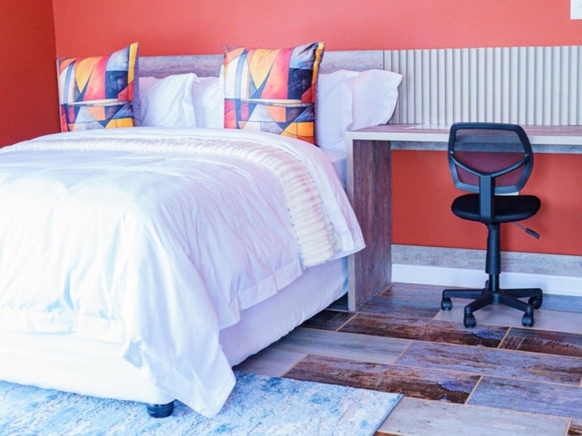 The guest house offers tastefully furnished bedrooms, each fitted with a queen-size bed dressed in high-quality linen to ensure a restful experience. Every room features a private en-suite bathroom and is equipped with modern conveniences, including a smart TV with access to Netflix, Showmax, Prime Video, and YouTube, reliable high-speed Wi-Fi, air-conditioning, and a dedicated workspace for guests who may need to attend to business matters.