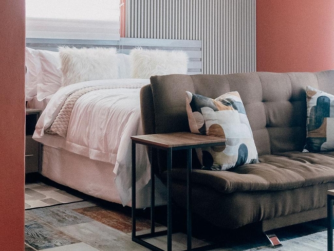 he Velvet Luxe Room is a modern and stylish space featuring a queen bed and a sofa bed, along with an en-suite bathroom with both a bath and separate shower. It includes air conditioning, a ceiling fan, a comfortable sitting area, and a private balcony with mountain views.