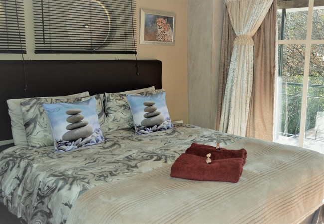 Gentle Presence Cottage 1 consists of an open plan living area, a kitchen, 2 bedrooms and 2,5 bathrooms. The kitchen is fully equipped for self-catering. There is a TV and a dining room table where you can enjoy meals or play games. The bedrooms have all linen, electric blankets, heaters and fans. Both rooms have Queen size beds and the Living Room has a sleeper couch for 2 children/young guests.