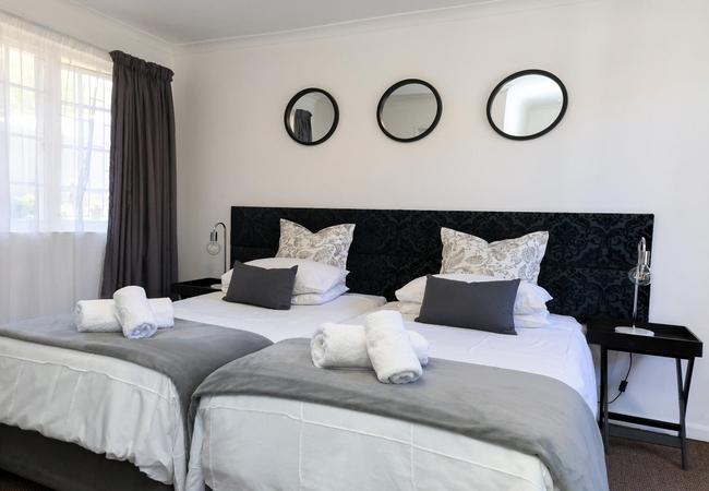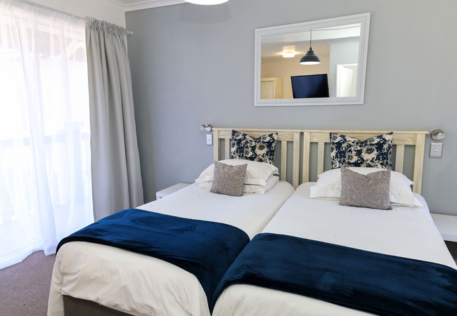 These rooms are furnished with twin / two single beds. The en-suite bathrooms are equipped with a shower or a bath. Equipped with DStv Hotel bouquet, kettle, telephone, heater, hairdryer, free Wi-Fi, tea- and coffee-making facilities.
