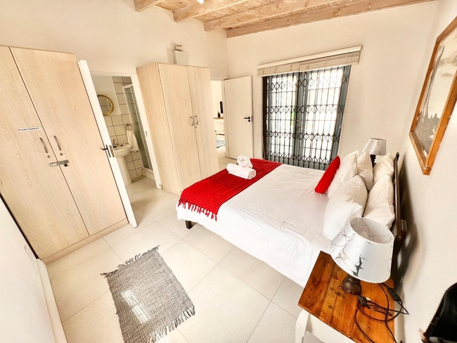 The dining area is designed for shared meals, while the lounge offers comfy seating and a TV with full DStv for entertainment. Additional amenities include Wi-Fi, a non-smoking environment, a cleaning service, and various bathroom essentials. Guests can also enjoy the outdoor patio, which is furnished with outdoor seating and a dining area, making it an ideal spot for al fresco meals or relaxation.