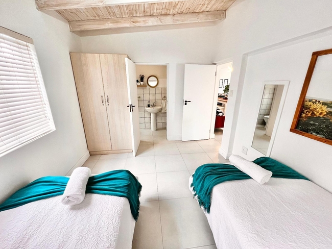 The house boasts four inviting bedrooms, each featuring its own en-suite bathroom fitted with a shower. Among these, two bedrooms are furnished with queen-size beds, while the remaining two are equipped with twin three-quarter beds. The fully equipped kitchen includes modern appliances such as a refrigerator, microwave, oven, dishwasher, washing machine, and tumble dryer, along with coffee and tea facilities. The indoor braai/fireplace enhances the homey atmosphere, perfect for cozy evenings. The dining area is designed for shared meals, while the lounge offers comfy seating and a TV with full DStv for entertainment. Additional amenities include Wi-Fi, a non-smoking environment, a cleaning service, and various bathroom essentials. Guests can also enjoy the outdoor patio, which is furnished with outdoor seating and a dining area, making it an ideal spot for al fresco meals or relaxation. In the lounge area, you will find generous seating arrangements and a TV equipped with full DStv. The dining area features a large table that seats eight, and French doors open from the lounge to an outdoor patio furnished with comfortable seating and an outdoor braai area, ideal for dining al fresco. Additional amenities include a secure garage, ample parking, complimentary Wi-Fi, and a laundry service available for an extra fee. Guests can enjoy partial ocean views and access to BBQ facilities for an unforgettable experience on the West Coast.