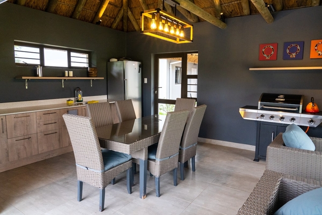 The full kitchen is equipped with a refrigerator, microwave, and coffee/tea facilities, while the outdoor area offers a dining table, braai (barbecue) facilities, and inviting spaces to enjoy nature - such as a patio, balcony, and terrace overlooking lush gardens.