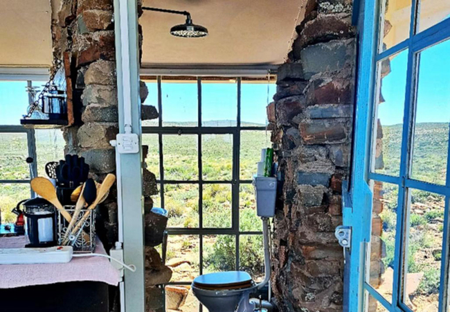 Glashuis is an open-plan cottage near Fraserburg that is furnished with two double sofa beds. The bathroom is fitted with a shower, toilet and basin.