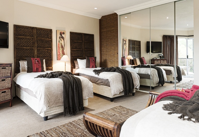 A room with Queen or King-size bed that can split into singles to maximize occupancy, Suitable for 1, 2, 3 or 4 people sharing. All rooms are equipped with TV's (commercial DSTV which includes news, MNET, MNET Movies, all sporting channels and Disney for the kids), hairdryers, microwaves, fridge, toaster, kettle, coffee machines, irons, crockery, cutlery and other kitchen essentials. Bath accessories are available for your use and rooms are serviced daily. All rooms are non-smoking but smoking is permissible on patios.