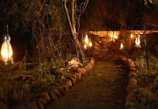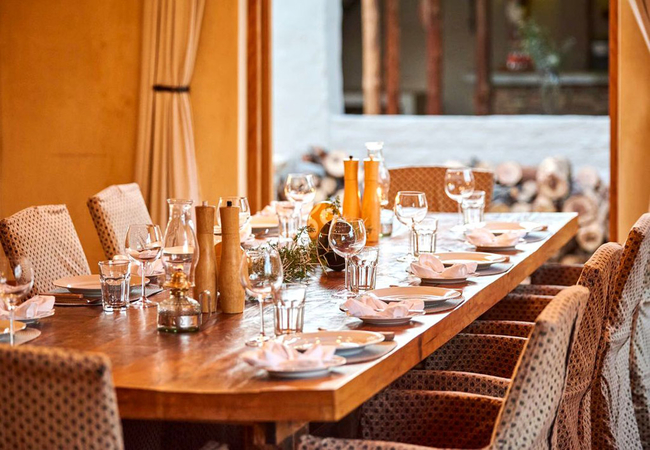 All meals are included in the Full Board Rates. A short lantern-lit trail from the individual chalets are the communal seating, bar and dining areas where food is served along with roaring log fires and a selection of fine South African wines, spirits, beers and soft drinks on an individual charge basis. A boma allows for star gazing and storytelling and the built-in braai creates an atmosphere for communal gatherings where much cooking advice is shared!