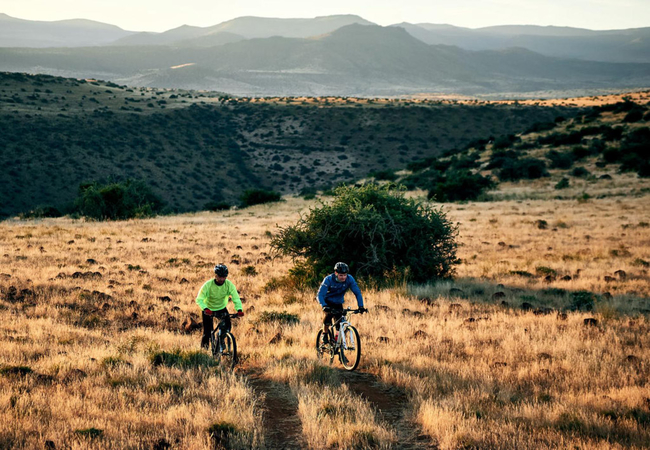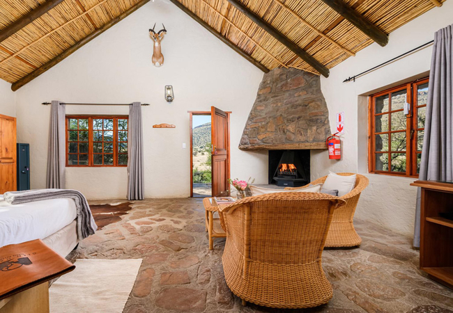 Full Board rates include a daily game drive, stargazing, mountain biking, bush walks and swimming in our salt pool. In this land there are no dangerous cats, which allows our guests to roam freely, whether guided or solo, and sleep under the stars should they wish, without no concern of a dangerous encounter.The reserve enjoys a rich biodiversity which is born of the lands interesting terrain and topography. The Sundays river encourages water-reliant creatures, and is home to exotic birds and amphibians. The hilly landscape which can be climbed by vehicle for viewing is home to eagles and klipspringers.